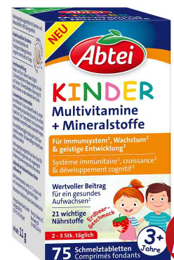 Abtei KINDER Comprimés fondants multivitamines et minéraux (75 pièces)