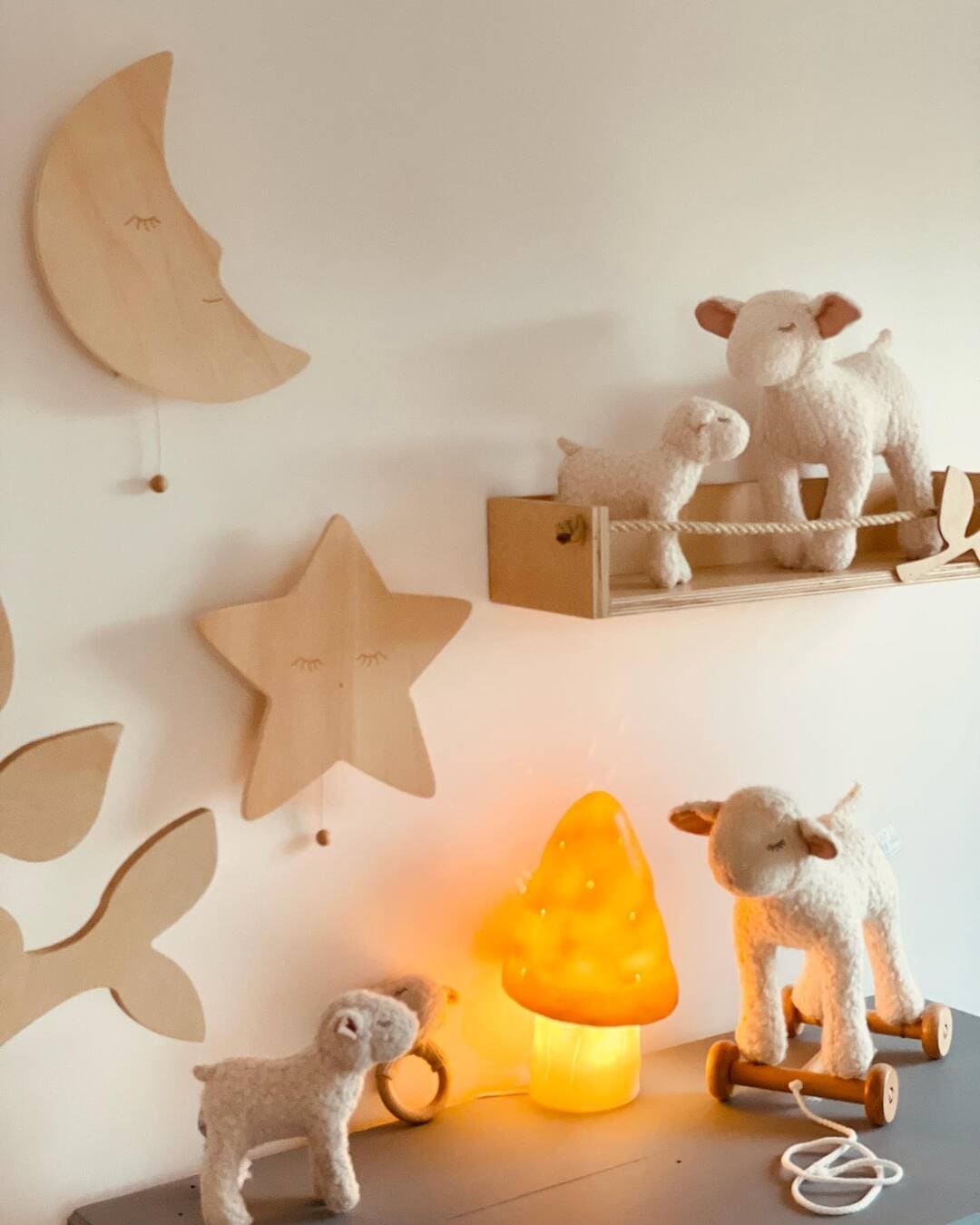 Cette adorable agneau à tirer, accompagnera votre tout-petit partout ! Ce petit agneau en bouclette sur roulettes, est facile à promener avec sa cordelette en coton.