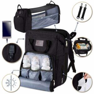 Le compagnon idéal de tous les parents qui souhaitent avoir pratiquement tout en un : sac à dos à langer et lit bébé, peu encombrants et compacts !