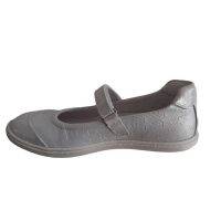 Ballerine de chez Bellamy, blanche à scratch avec un contre fort et une semelle amovible. 100% cuir avec des motifs étoilés très discrets.