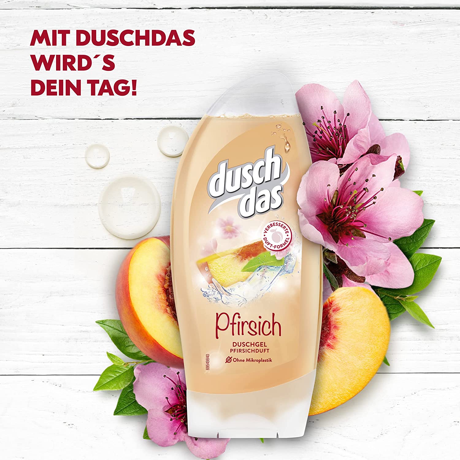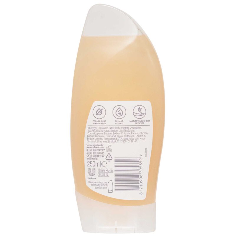 Le gel douche pêche permet de bien commencer la journée. Le gel douche de duschdas rafraîchit avec un parfum fruité et vitalisant de pêche. Une formulation de parfum unique aussi fraîche qu’un matin d’été. La baignoire douche est disponible dans le flacon pratique de 250 ml. Pour une expérience de douche idéale, le gel douche rafraîchissant est facile à doser, peut être rapidement lavé sur le corps et rincé facilement. Il laisse la peau fraîche et propre. Le gel douche a un pH neutre et donc particulièrement doux pour la peau. Il suffit d’humidifier la peau sèche sous la douche, d’étaler le gel douche sur le corps, de masser et de rincer. Vitalisé, rafraîchi ou revigoré – c’est ainsi que le gel douche permet aux femmes et aux hommes de commencer la journée avec une humeur positive. Découvrez maintenant aussi les autres gels douche de duschdas. Duschdas propose une large gamme de produits pour toute la famille. Nos parfums rafraîchissants inspirés de la nature mettent tout le monde dans une humeur paradisiaque et bénéfique afin qu’ils puissent profiter pleinement de la journée. En tant que première marque de gel douche en Allemagne, duschdas fournit une qualité fiable depuis 1973. Moins, c’est plus : la nouvelle douche ! La marque duschdas a un nouveau look et met l’accent sur ce qu’est vraiment la douche: commencez simplement la journée rafraîchie avec un gel douche qui convient à tout le monde. Parce que vous n’avez pas à faire de la science avec les douches! Cela se reflète également dans le nouveau design des duschdas: il est d’une simplicité rafraîchissante et donc simplement rafraîchissant. Les images grandes et dynamiques des parfums sont au centre et promettent une expérience de douche rafraîchissante. C’est tout ce qu’il faut pour avoir envie de plus. Il en va de même pour les ingrédients chez duschdas: moins, c’est plus. Les microplastiques ont été complètement éliminés. Tous les parfums sont inspirés par la nature, offrant des moments simples et naturels de fraîcheur sous la douche. Il suffit de prendre une bonne douche. Il suffit de prendre une douche.
