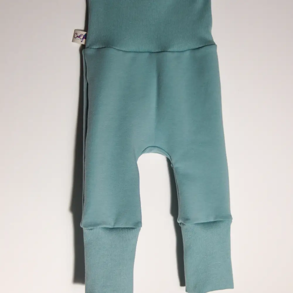 La coupe est pensée pour s’adapter à la croissance de votre enfant, les tissus extensibles facilitent cela. La ceinture et les bandes aux chevilles sont sans élastique pour assurer un maximum de confort et ne pas marquer le ventre de bébé.