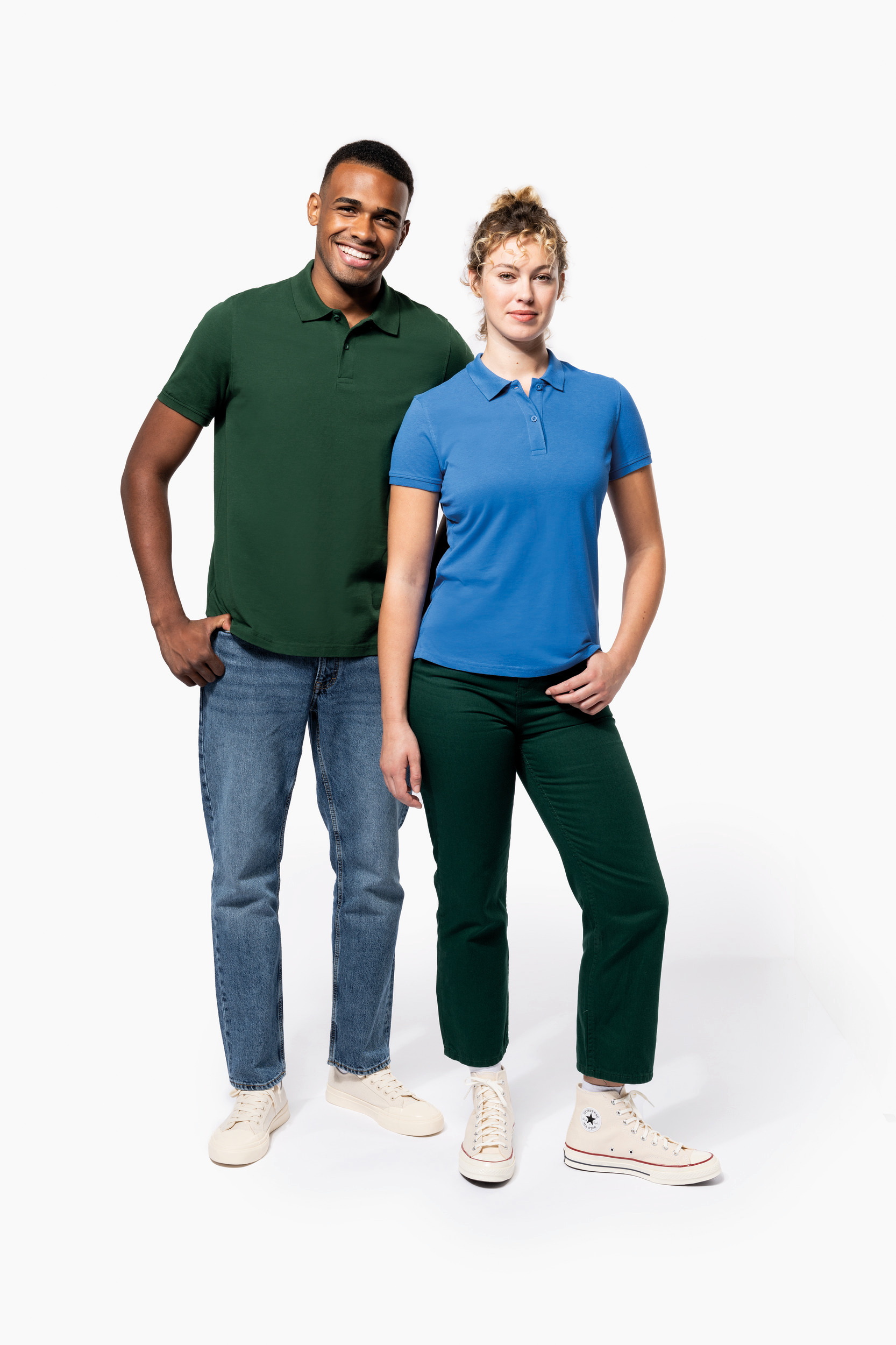 100% coton peigné biologique. Maille piquée. Coupe ajustée. Lavé aux enzymes. Col et bas de manches en bord-côte 1×1. Patte de boutonnage 2 boutons ton sur ton. Bande de propreté sur intérieur col et fentes latérales. Coutures côtés. Finition double aiguilles bas de vêtement. Pas d’étiquette de marque au col, uniquement une puce de taille pour faciliter la personnalisation.