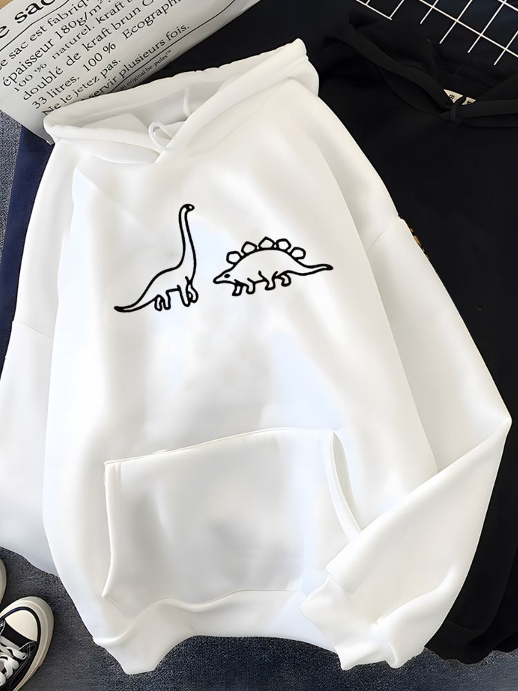 Le sweat à capuche décontracté avec imprimé dinosaure est le choix parfait pour ceux qui veulent allier confort et style dans leur quotidien. Son design original avec un imprimé dinosaure tendance apporte une touche fun et décontractée à votre tenue.