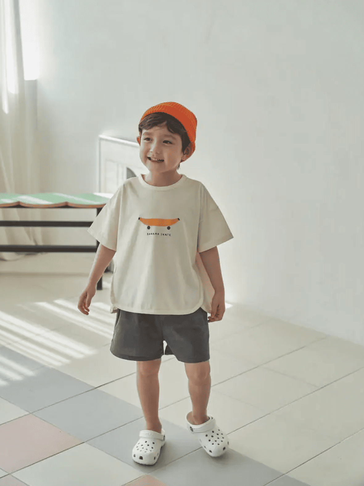 On craque pour l’imprimé fun « Banana skate » de ce t-shirt oversize enfant ! Associez ce t-shirt loose à un short cycliste pour un look simple et confortable ! Conseils taille Taille légèrement grand, par exemple la taille 2/3 ans correspond plutôt à un 3 ans.